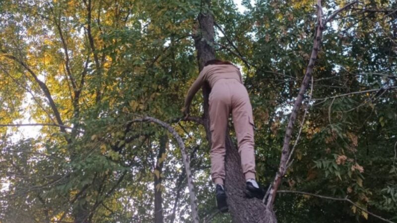 В Новосибирске женщина забралась на дерево, чтобы спасти кошку