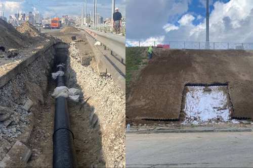 На дамбе новосибирского моста устанавливают дождеприемники после обрушения