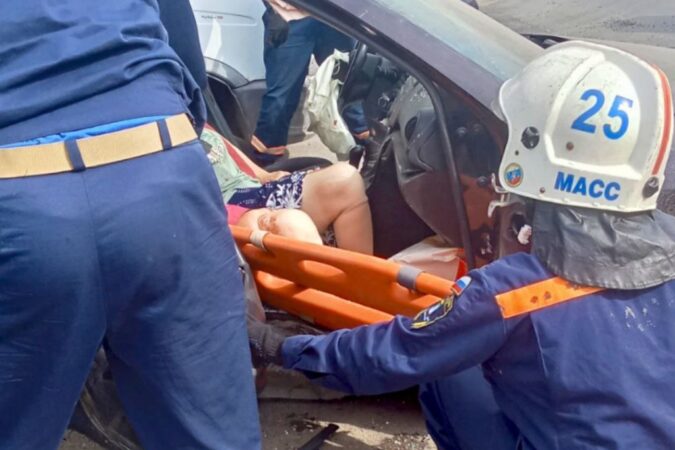 В Новосибирске женщину зажало в разбитой машине после аварии на Богаткова