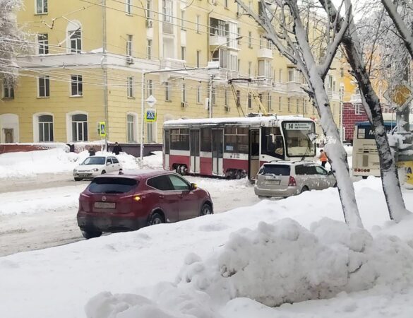 Два трамвая сошли с рельсов из-за снегопада в Новосибирске