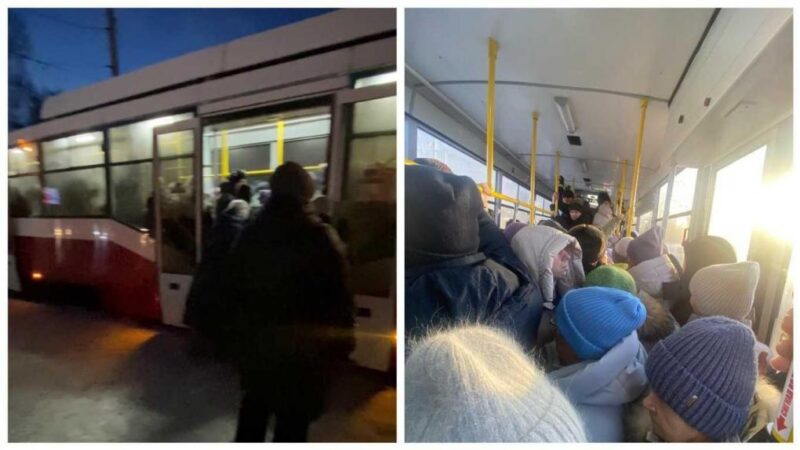 В Новосибирске из-за пробок горожане штурмуют трамваи