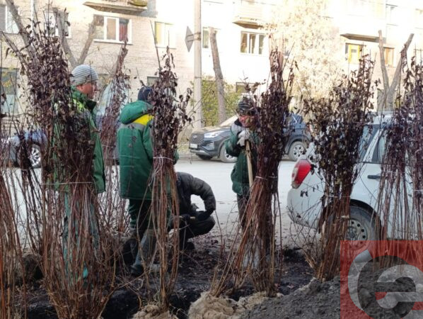 В центре Новосибирска высадили 100 кустарников для борьбы с автохамами