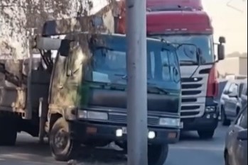 В Новосибирске водитель тягача объехал пробку по тротуару