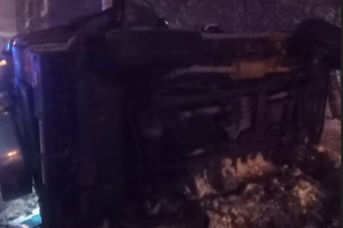 Mercedes-Benz G-класса занесло на Большевистской, после чего он перевернулся на крышу.