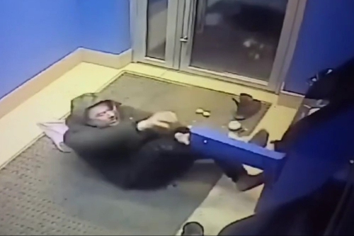 Инцидент произошел на улице Станционная. На кадрах видно, что сибиряк зачем-то разулся в банке и разбросал ботинки. После этого мужчина сел на пол и попытался открыть ячейку банкомата, где хранились деньги.