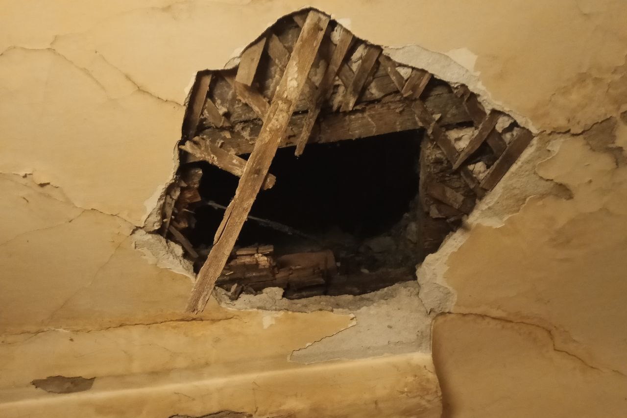 В сентябре 2025 года мы писали, что в другой квартире на улице Кузьмы Минина, 7 тоже обрушился потолок. По мнению одного из жильцов Владимира Захарова, причины обрушения потолка были связаны со старыми перекрытиями и некачественным капремонтом крыши.