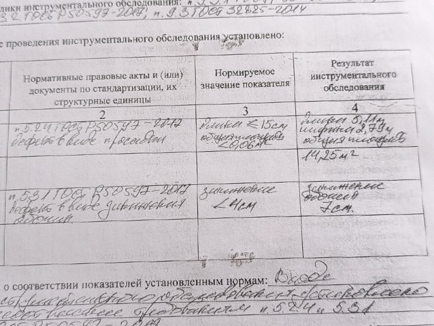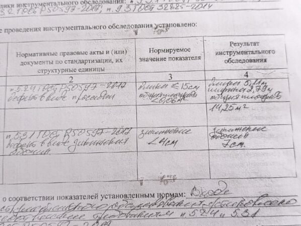 Как следует из «Протокола инструментального обследования», который автомобилистка получила от сотрудников ГИБДД, размеры «дефекта дорожного полотна» составляли 5,11 метров в длину, 2,79 м в ширину. Общая площадь – 14,25 квадратных метров. К тому же, обочина в этом месте не соответствовала ГОСТУ – она была занижена на семь сантиметров по отношению к дорожному полотну при допустимых четырех сантиметрах.