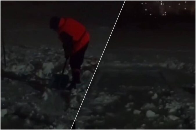 Из-за заполненности снегоотвалов были организованы временные площадки для складирования снега.