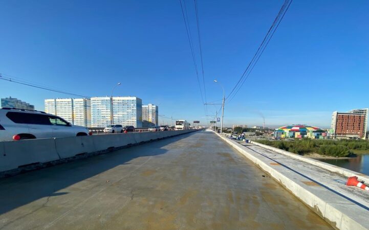 В Новосибирске на дорогу Димитровского моста наносят гидроизоляцию