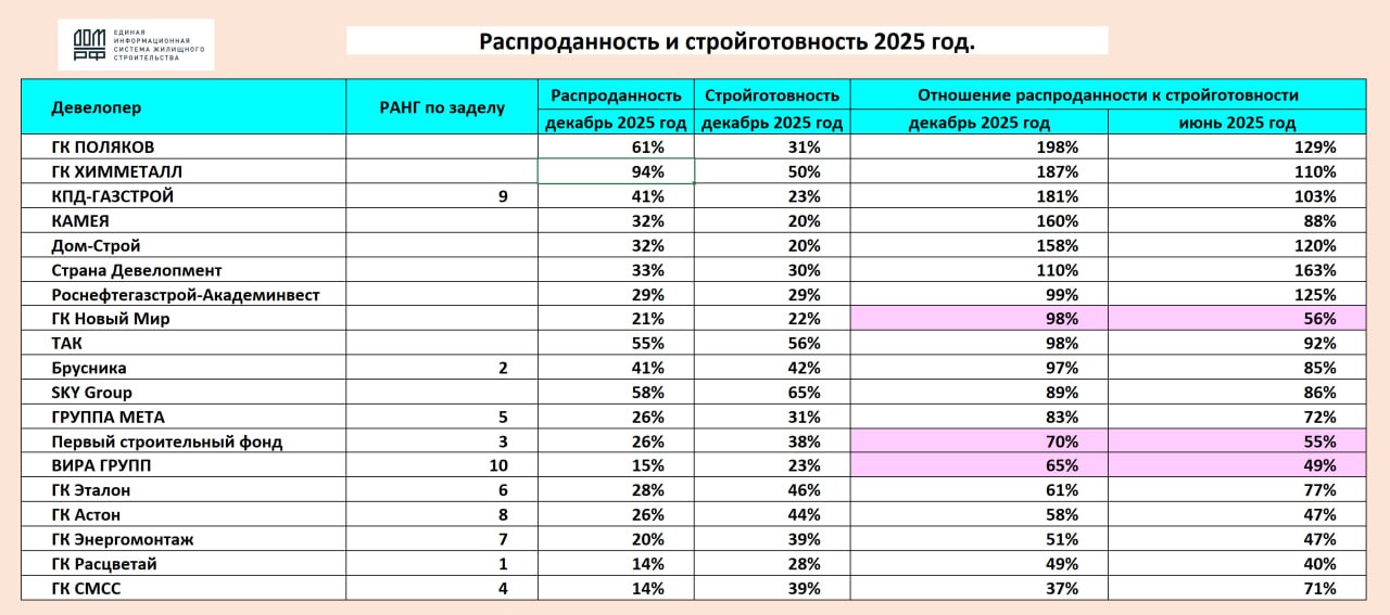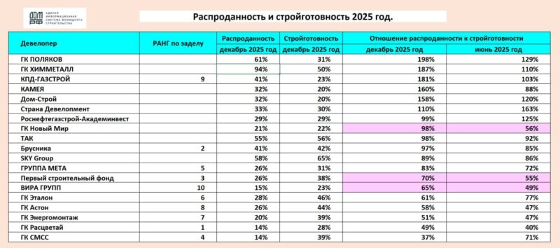 Сергей Николаев составил рейтинг застройщиков по соотношению распроданности и строительной готовности, подчеркнув, что этот показатель во многом определяет стабильность и надежность строительной компании, хотя и не является единственным.