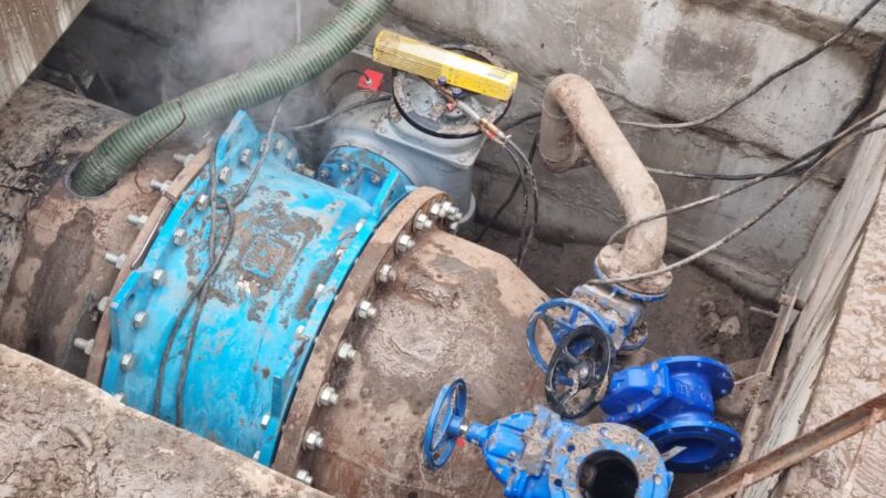 В данный момент рабочие ведут сварочные работы. После магистральный водопровод начнут поэтапно заполнять водой.