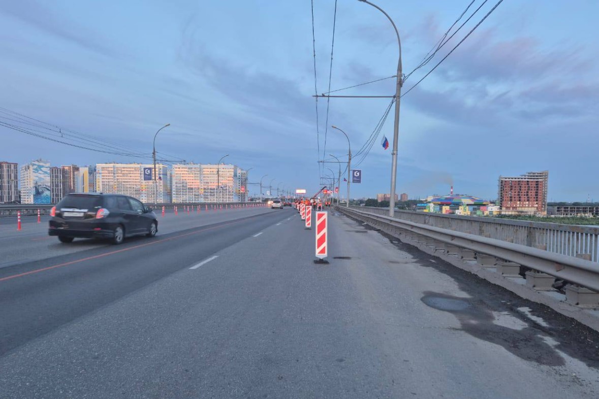 9 июня в Новосибирске на Димитровском мосту перекрыли одну из полос из-за ремонта. На проезжей части установлено реверсивное движение транспорта.