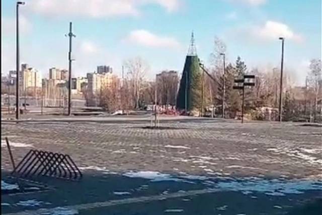 В Новосибирске в парке у нового ЛДС начали устанавливать новогоднюю ёлку