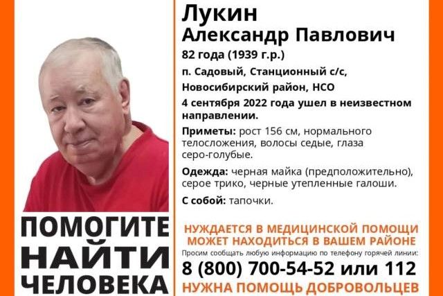 Под Новосибирском пропал 82-летний Александр Павлович Лукин. Пенсионер живет в поселке Садовый Станционного сельсовета Новосибирского района. Об этом сообщили в группе поискового отряда «ЛизаАлерт» социальной сети «ВКонтакте».