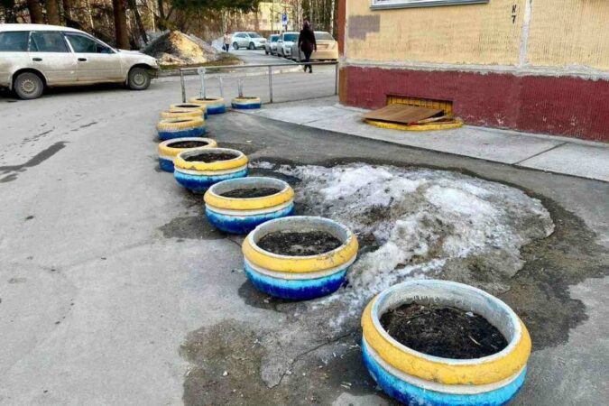 Возле одного из домов в новосибирском Академгородке желто-синие клумбы перекрасили в бело-синий цвет. Информация об этом появилась в Telegram-канале «Ненаучный городок».