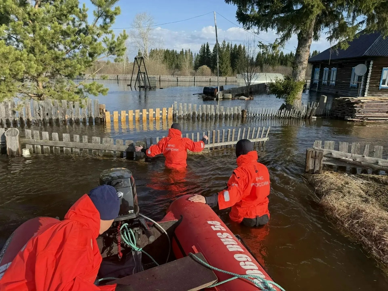 Спасатели на лодках эвакуируют людей, потому что пройти нереально. В некоторых случаях сотрудникам МЧС приходится нести сибиряков на спине.