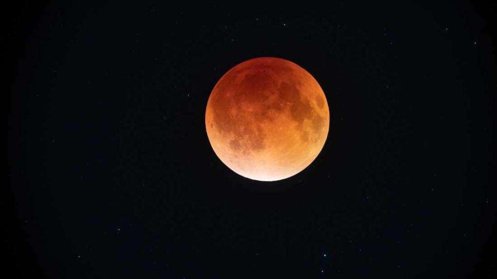 Лунное затмение длилось почти три часа. Необычное астрономическое явление было видно невооруженным глазом. Ночное светило окрасилось в красный цвет из-за рассеивания солнечного света в атмосфере Земли.