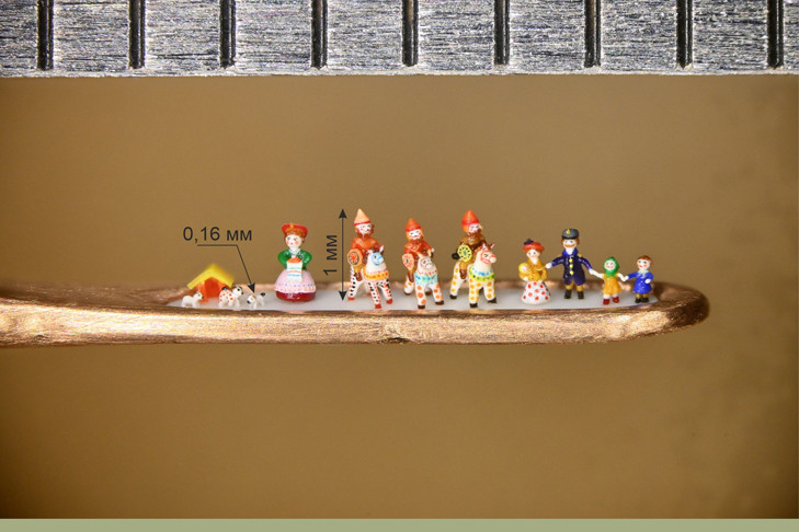 Мастер микроминиатюр из Новосибирска Владимир Анискин создал самые маленькие в мире дымковские игрушки. Он смог поместить в одно игольное ушко трех богатырей на конях, трех гончих псов и купеческую семью. Об этом рассказал Vn. ru 20 января.