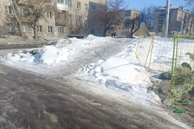 Жители Кировского района Новосибирска пишут в соцсетях о невозможности передвигаться по тротуару на чётной стороне улицы Зорге в районе остановки «Училище» на Затулинском жилмассиве. Информацию с фотографиями они разместили в паблике «Мой массив Кировский» во ВКонтакте 23 февраля.