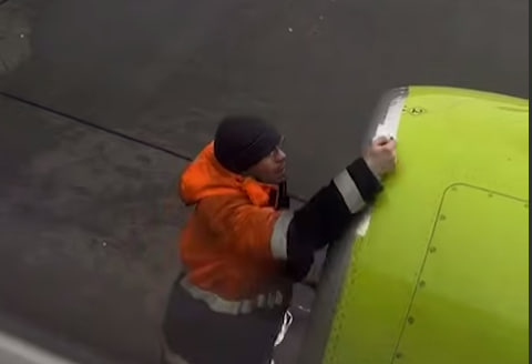 Пассажиры рейса S7 в аэропорту Толмачево выложили в соцсетях видео, на котором рабочий обматывает двигатель самолета скотчем. Люди удивились необычному ремонту.