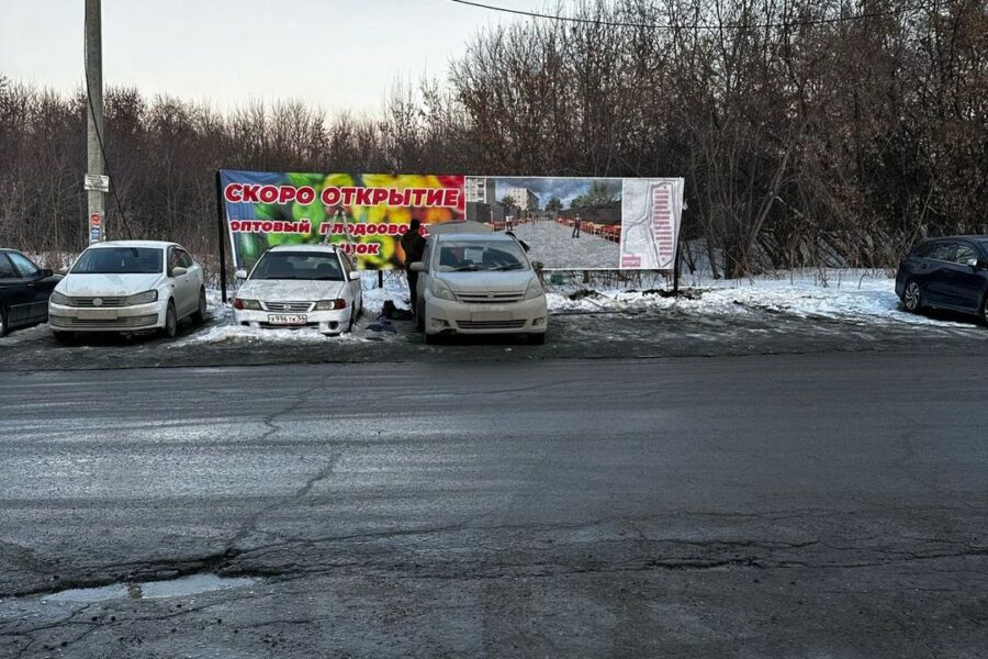 Плакат с информацией о скором открытии оптового плодоовощного рынка разместили на улице Палласа. Местные жители заранее выступили против такого соседства. Об этом пишет infopro54.ru.