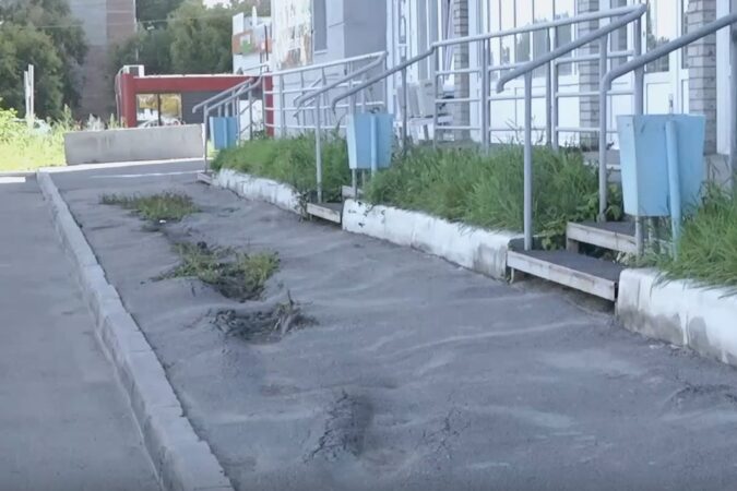 Не удивительно, что спустя пару лет асфальт вокруг новостройки начал проваливаться. Старший по дому в микрорайоне Южный, 59 Олег Найденко оценил масштаб бедствия и уверен, что без серьезного ремонта не обойтись.