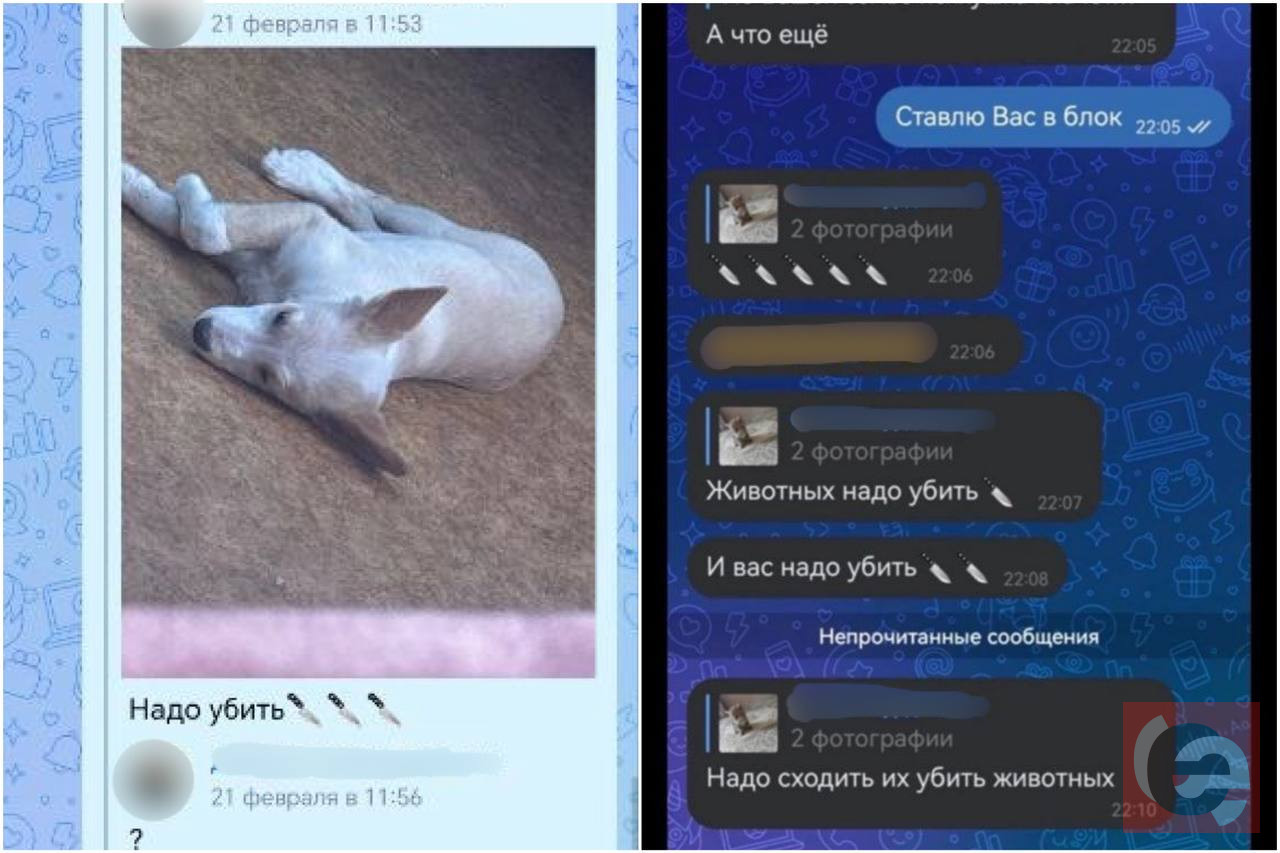 — У нас есть общий чат с зоозащитниками и неравнодушными людьми. Многие из них начали жаловаться на то, что живодер им отправляет видео с издевательствами над животными. Видимо, у него началось обострение. Насколько я знаю, он отправляет какой-то бессвязный текст и прикрепляет видео, — поделилась местная жительница.