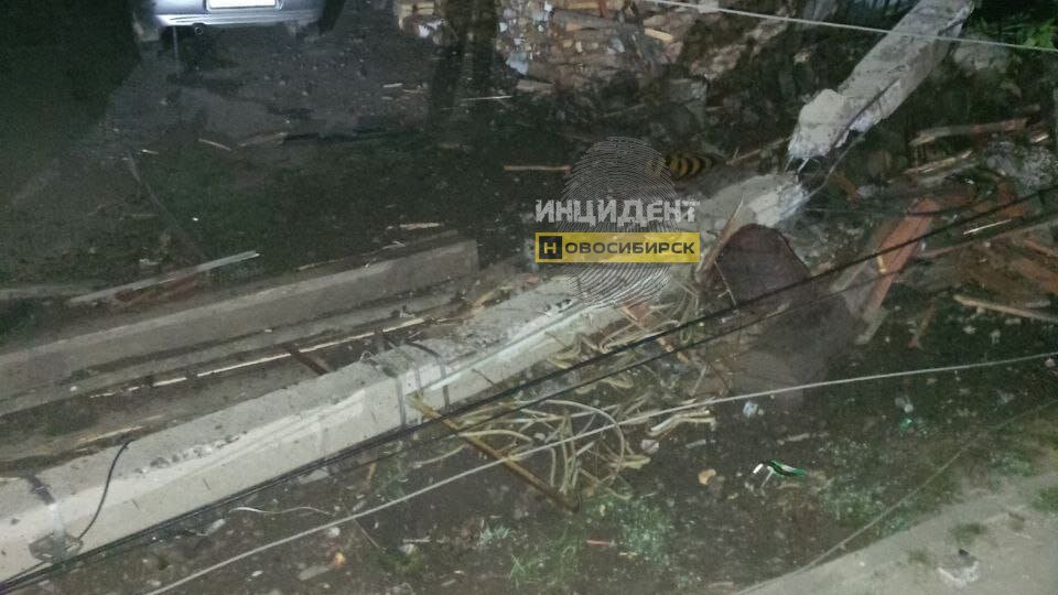 На кадрах видно, как жильцы соседних домов собрались на месте происшествия. Рядом с ними, на земле, лежит покореженный столб. Удар был такой силы, что в одном из домов выбило окно.