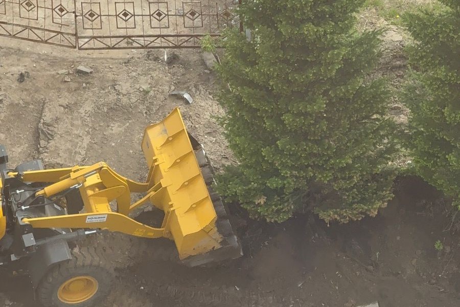 Что называется «процессом пересадки» — хорошо видно на видеозаписи, которую активисты и местные жители намерены использовать, как доказательство незаконных действий застройщика.