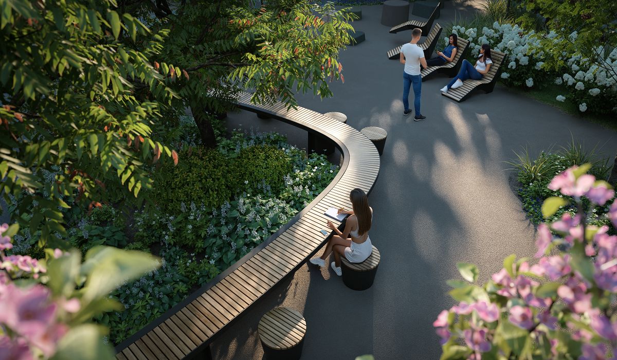 — Это будет рекреационное пространство с тематическими зонами. Вместо привычного асфальта городской лес с разнообразной растительностью. Вместо стандартных лавочек — семейный амфитеатр и «зелёные кабинеты» для работы на свежем воздухе. Отдельные площадки для детей, спорта и даже для прогулок с питомцами — чтобы каждый житель нашёл здесь свой уголок, — пояснил Илья Поляков.
