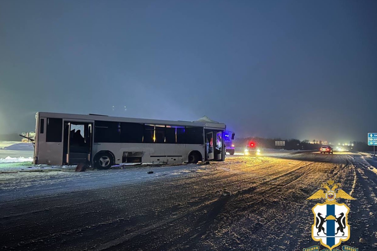 По информации Госавтоинспекции НСО, около семи часов утра на Колыванской трассе большегруз Volvo, совершая поворот, не уступил дорогу автобусу НЕФАЗ и врезался в него. В салоне автобуса находилось два десятка человек — сотрудники одного из предприятий. Шесть пассажиров были госпитализированы с различными травмами. В больницу также доставили водителя автобуса.