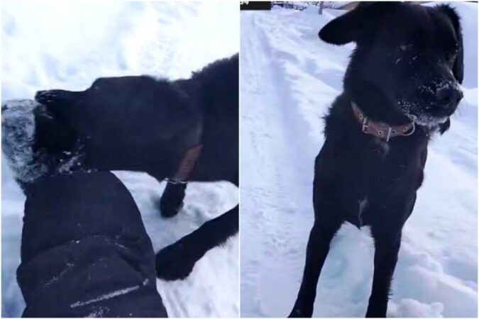На кадрах видно, как пес вцепился в ногу лежащего на снегу мальчика. Все это время испуганный школьник кричал. Отметим, что на шее животного был ошейник. Вероятно, пес мог сбежать из дома.