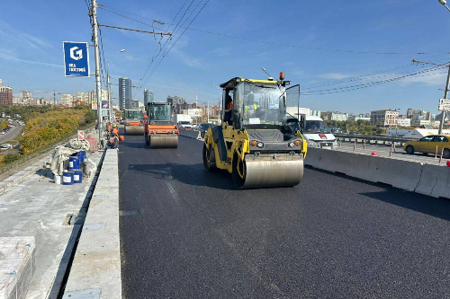 В Новосибирске на Димитровском мосту уложили новый асфальт