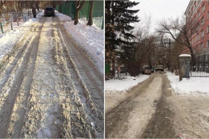 Глыбы льда и наледь с дорог складируют там, где летом должна расти трава.