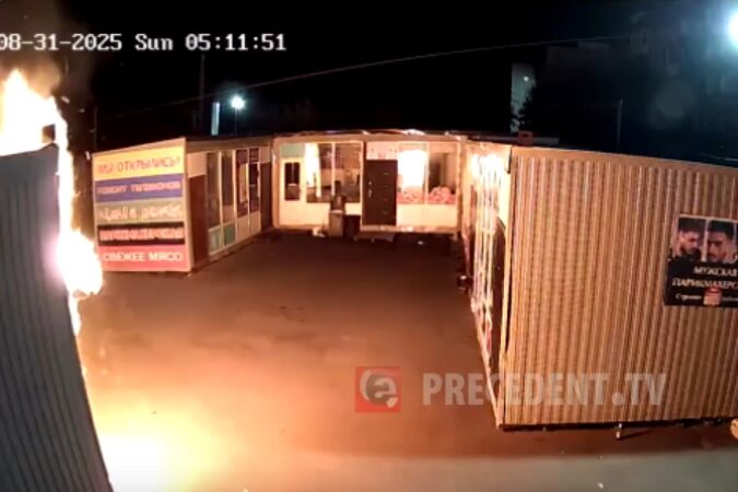 Видеозапись с места происшествия «Прецеденту» передал представитель ООО «Лайнер-2» Дмитрий Поскотинов. Фирма является собственником объектов, которые заполыхали рано утром 31 августа. Очевидно, что неизвестный действовал целенаправленно: прибыл к павильонам на проспекте Маркса, осмотрелся, подошел к сооружению и сделал свое «черное дело». Далее поджигатель убедился, что объект загорелся и тут же скрылся.