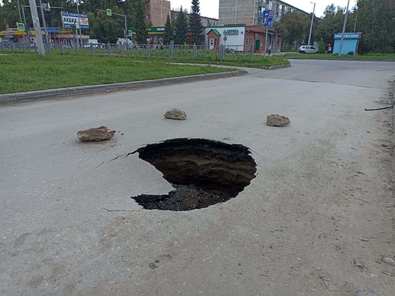 Двухметровый провал асфальта на автомобильной дороге образовался в Бердске в микрорайоне «Семь ветров». В соцсетях написали, что провал имеет форму «сердечка», хотя у многих бердчан с учетом исходящего из провала запаха возникла ассоциация с другой частью человеческого тела. Подробности сообщает паблик «АвтоБердск» ВКонтакте.
