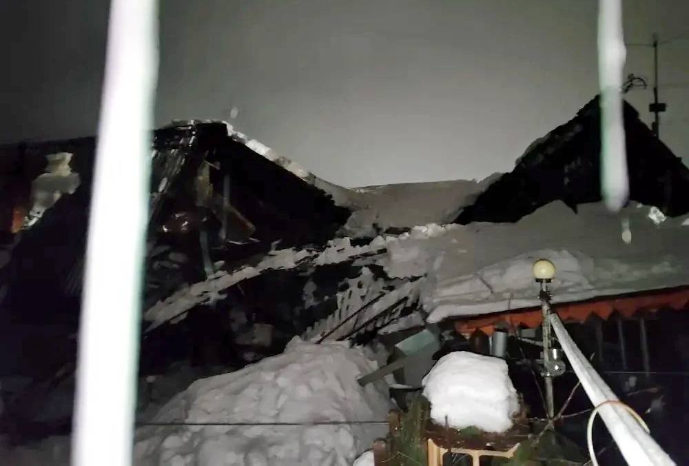 На месте работают спасатели и пожарные. Отметим, что этой зимой выпало рекордное количество осадков. А аномально теплая погода «утяжелила» снежные шапки на крышах.