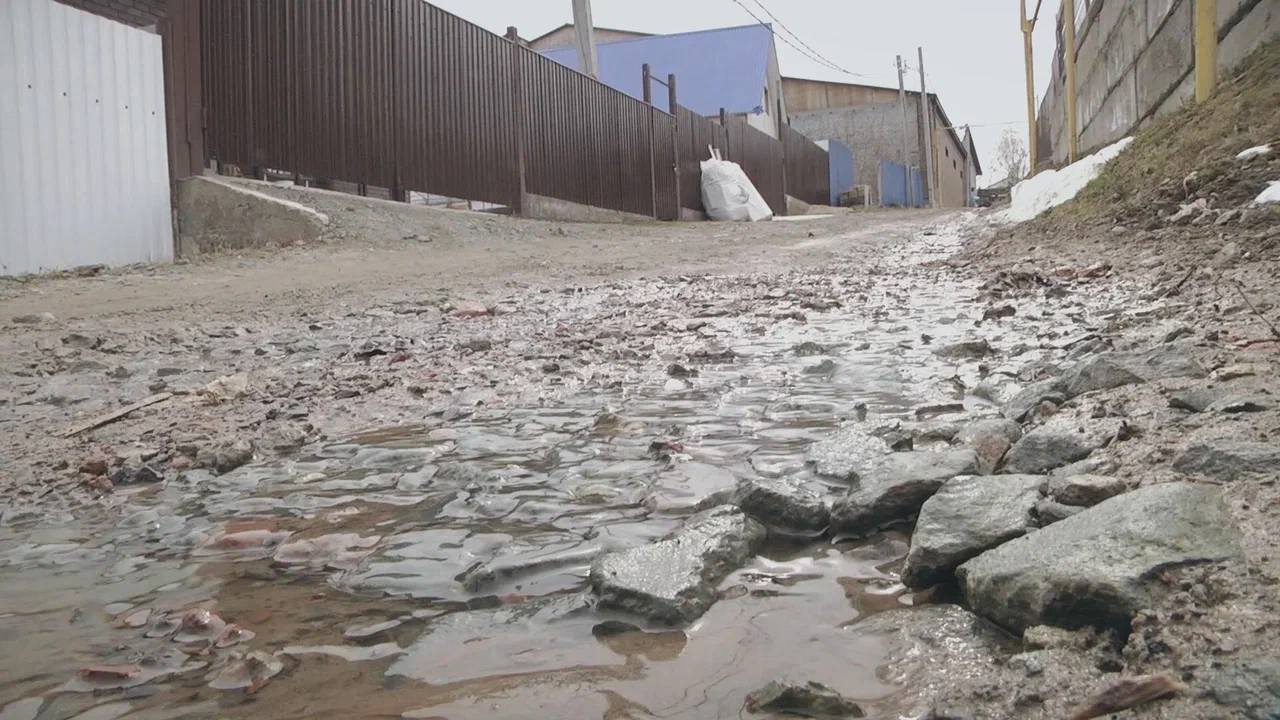 Непрерывно текущий поток канализации подмывает дорогу, по которой местные выезжают в город и попадают к себе домой.