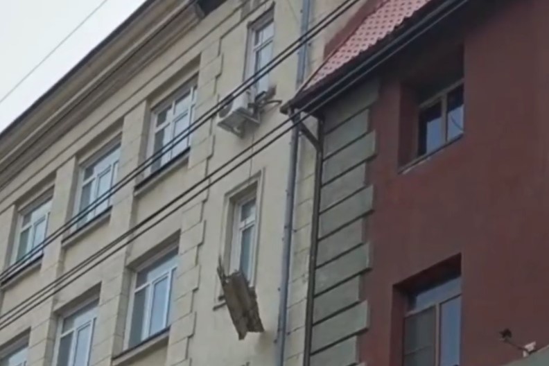 Фрагмент фасада здания, построенного в начале прошлого века, рухнул на тротуар 4 мая. ЧП обошлось без пострадавших. На место прибыли сотрудники МЧС, которые огородили опасный участок. Причины обрушения сейчас устанавливаются.