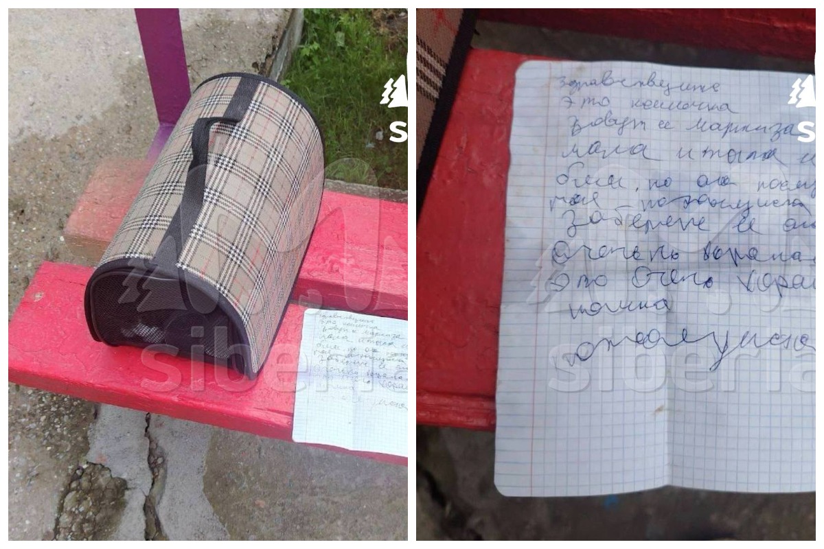 Фото переноски и записки на лавочке опубликовал телеграм-канал Mash Siberia.