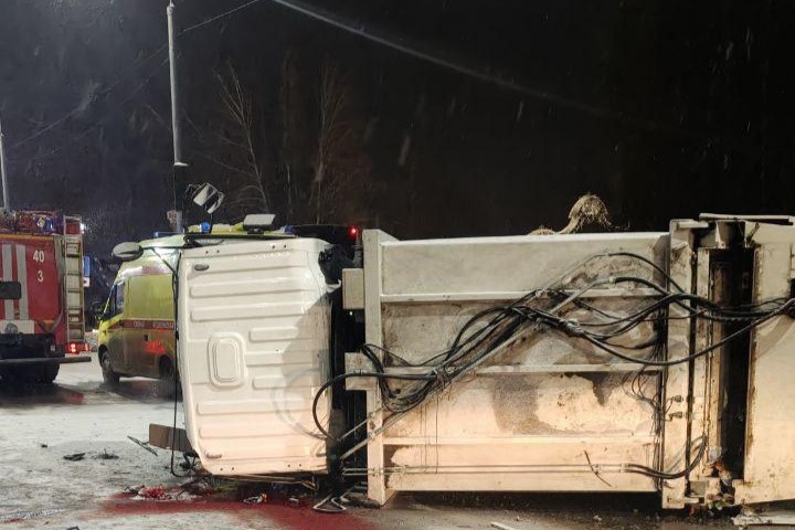 Предположительно, КамАЗ перевернулся из-за скользкой дороги.