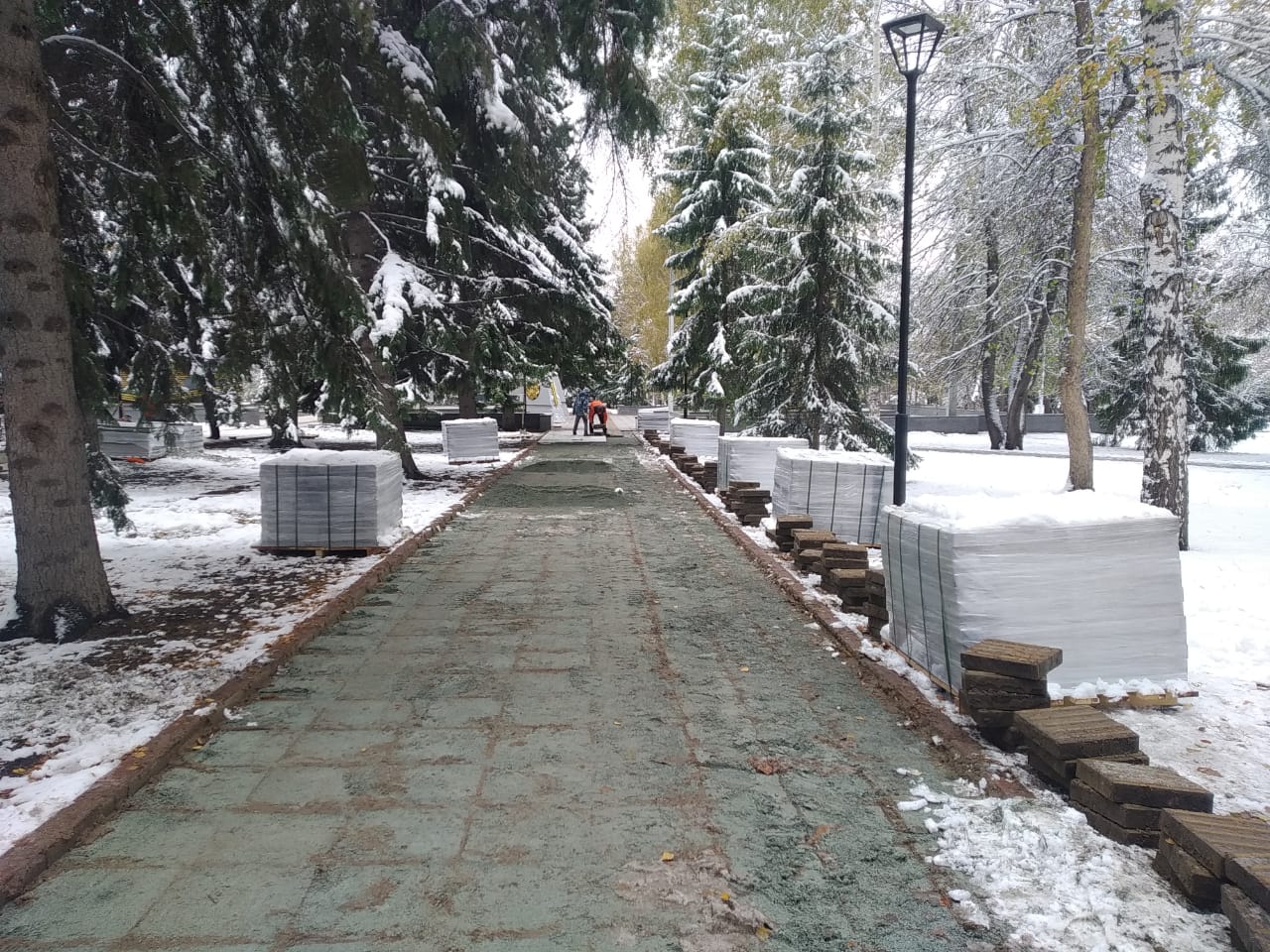 В Новосибирске продолжается ремонт в Сквере, прилегающем к Монументу Славы в Ленинском районе. Строители сняли старую тротуарную плитку на дорожках сквера и привезли новую. Ремонт в это время года удивил горожан.