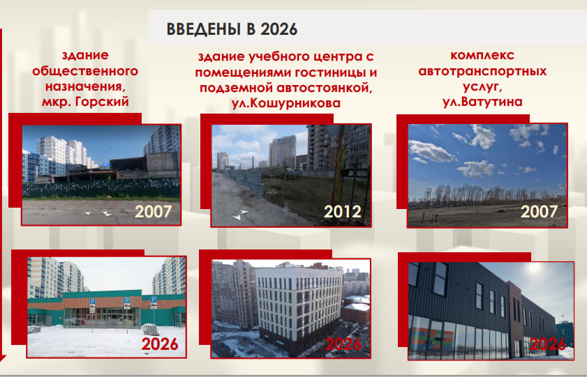 В 2026 году ввести удалось только три объекта: 13-этажное здание учебного центра с гостиницей и автостоянкой на улице Кошурникова (строительство началось в 2012 г.), здание ТЦ на Горском жилмассиве (2007 г.) и помещение для автокомплекса на улице Ватутина, тоже начатое в 2007-м. Еще два здания — на проспекте Дмитрова и улице Семьи Шамшиных — достроили в 2025 г. Об этом на совещании в мэрии доложил заместитель начальника департамента строительства и архитектуры – начальник управления строительства и инженерного обеспечения мэрии города Новосибирска Иван Ивашина.