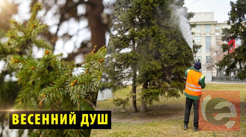 Для елей устраивают самый настоящий душ, чтобы очистить их от личинок вредителей и подготовить к летнему сезону.