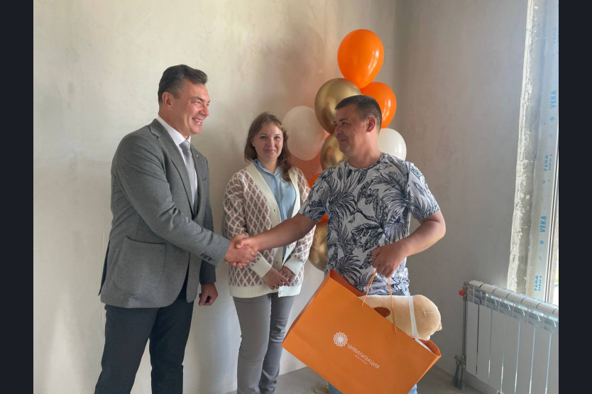 Работник авиационного завода им. Чкалова Петр Толстиков получил ключи от новой квартиры из рук главного архитектора – заместителя министра строительства Новосибирской области Ивана Фаткина 12 августа. Петр Толстиков с семьей стали первыми новоселами по программе льготного жилищного кредитования сотрудников оборонно-промышленного комплекса в Новосибирской области.