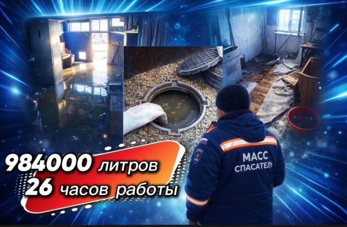 Суммарное время работы по борьбе с потопами в жилых домах составило 26 часов. За это время спасатели откачали 984 000 литров воды.