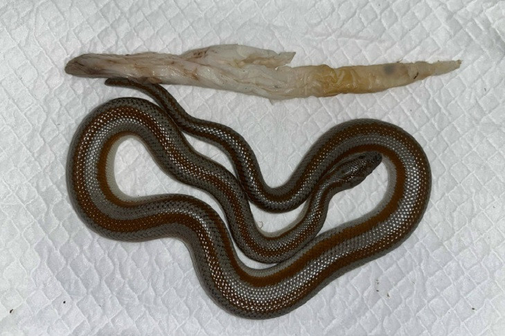 — После возвращения домой Вася срыгнул салфетки, которые использовались в качестве подстилки. Длинна инородного предмета составила 27 см. Так как салфетки использовались в несколько слоев, пропажи двух штук хозяева удава не заметили, — рассказали ветеринары.