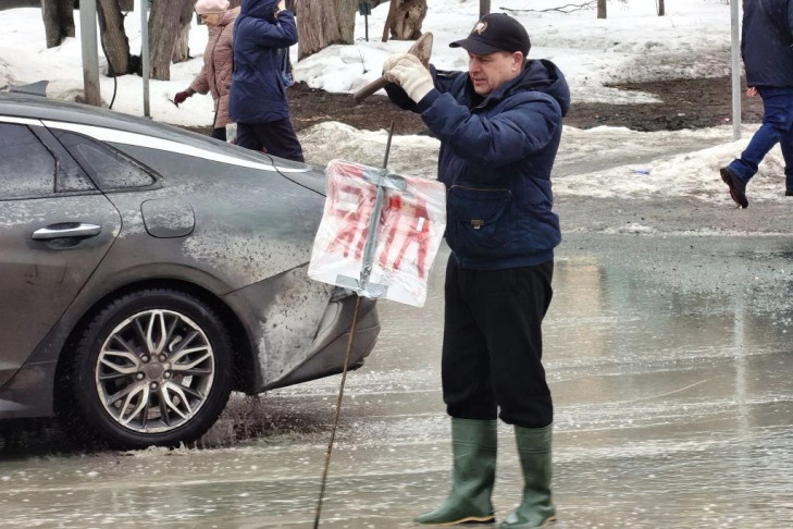 — Новый дорожный знак «Яма» установили в луже на улице Котовского. Житель Новосибирска среди бела дня вбил кувалдой самодельный указатель в опасном для водителей месте, — сообщили коллеги.