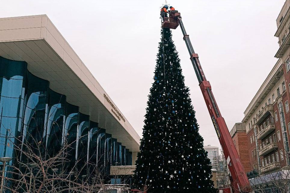 Новогоднюю елку высотой 18 метров монтируют у Государственного концертного зала имени Арнольда Каца. Об этом в своем телеграм-канале сообщает директор Новосибирской филармонии Анна Терешкова.