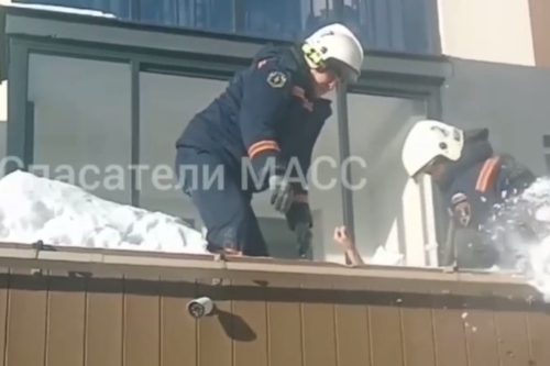 Сибирячка чудом осталась жива. Спасатели эвакуировали женщину с козырька через окно одного из жителей дома.